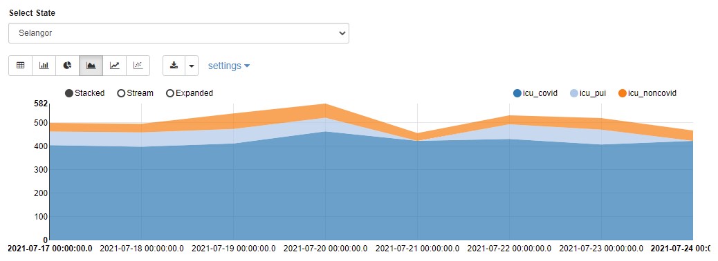 Personally, I am interested in the ICU dataset.  When we see a large number of new positive cases reported daily, I start to wonder about the condition of ICU in Klang Valley especially. There wasn’t much information pertaining the ICU utilization in the country, not even at the state level.